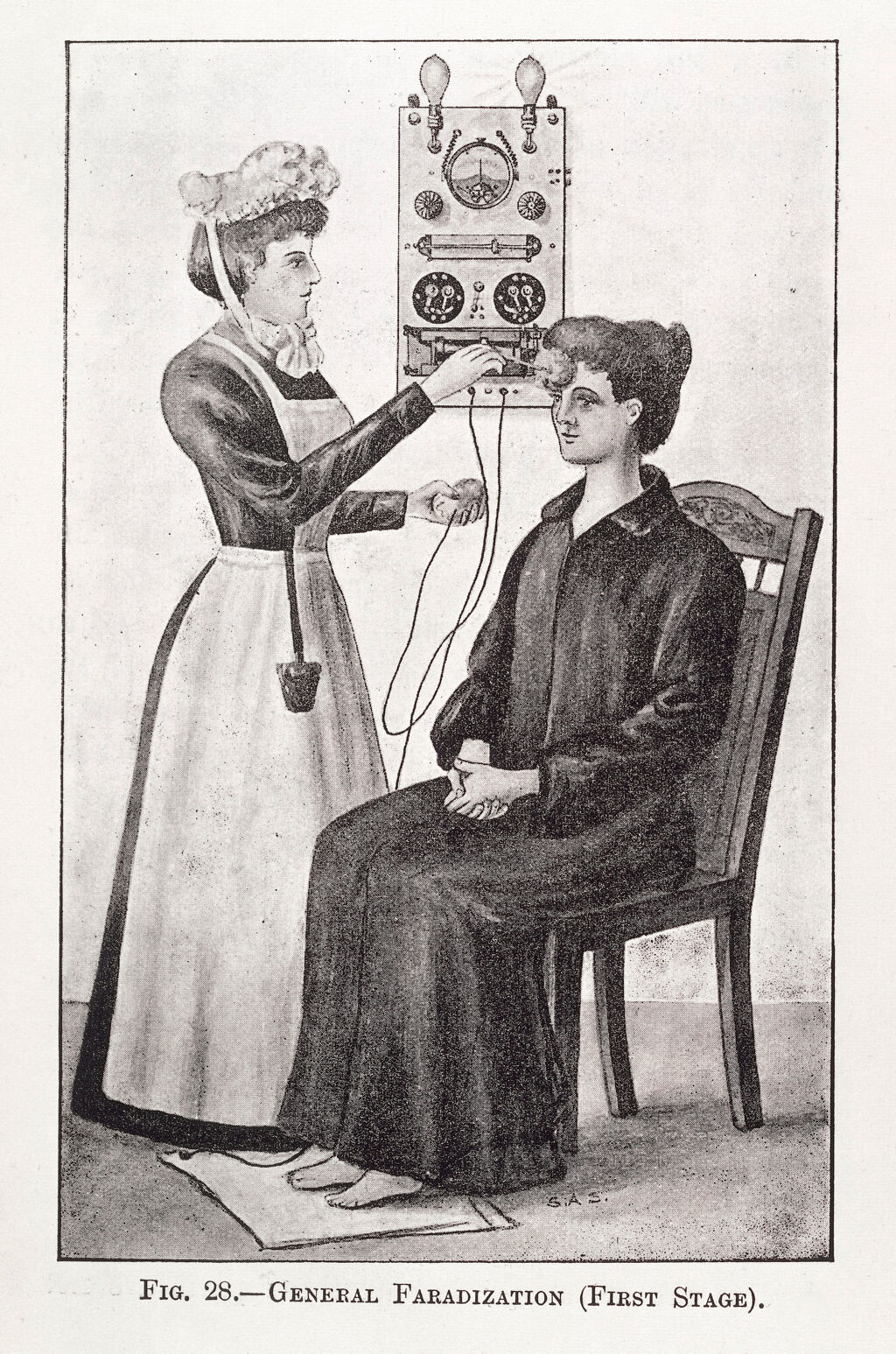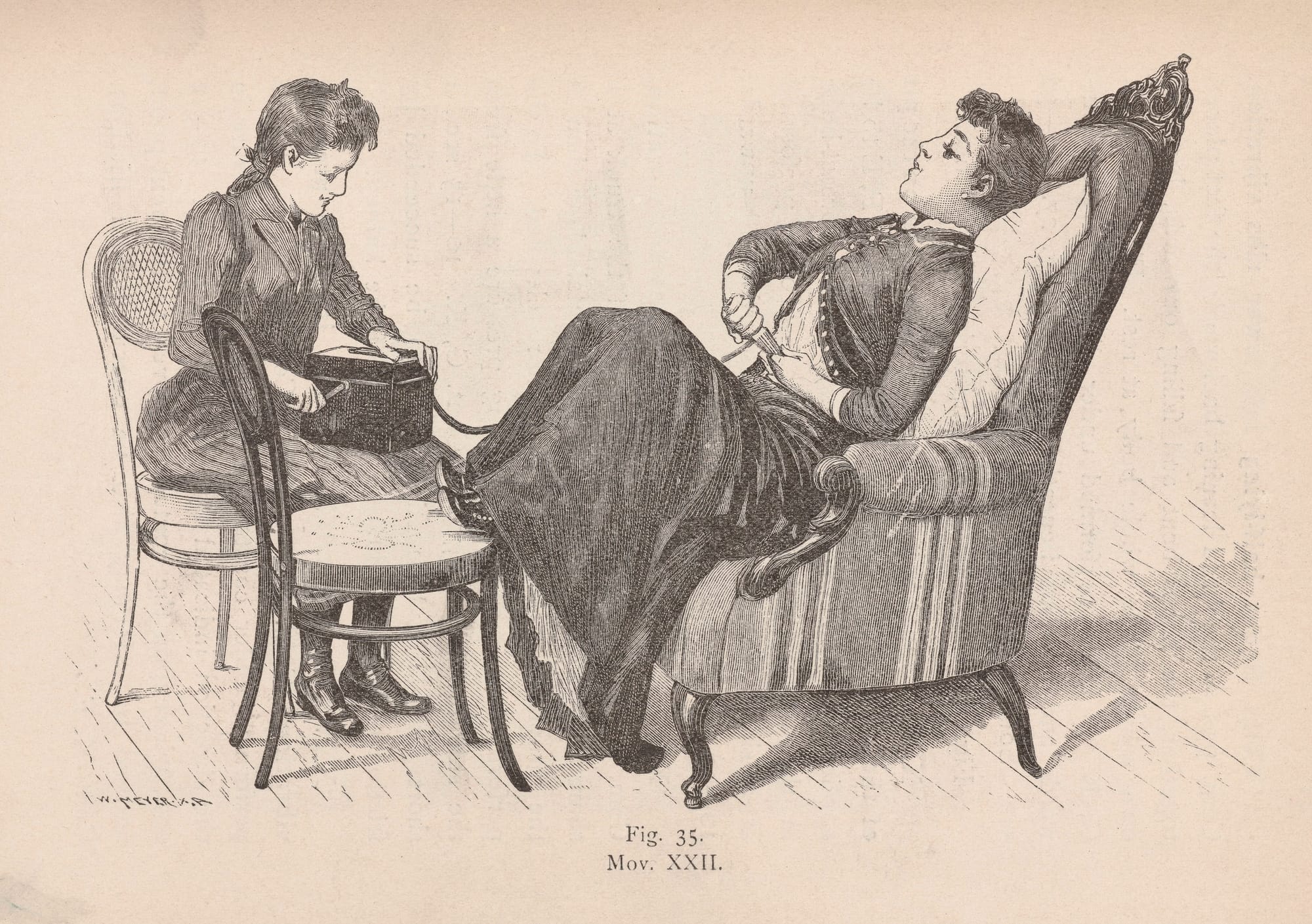 ඉතින්, දොස්තර මහත්තුරු මේකට අපූරු බෙහෙතක් හොයාගත්තා කියලා කතාවක් තියෙනවා. ඒ තමයි, 'genital massage' (ලිංගික සම්බාහනය) සහ 'Pelvic massage' (උකුළු ප්රදේශයේ සම්බාහන) කරලා, කාන්තාවව 'hysterical paroxysm' (එහෙමත් නැත්නම් 'Orgasm' එකක්) වෙත ගෙනල්ලා සුවපත් කරන එක.